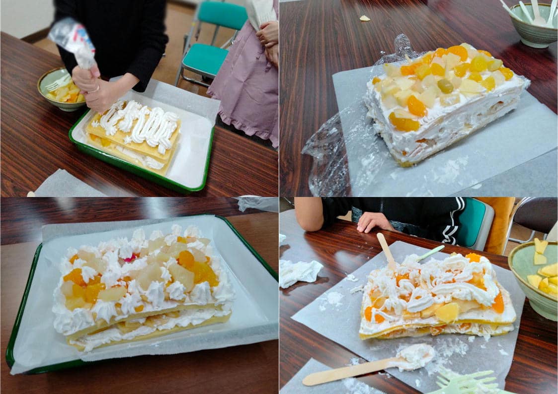 子どもたちもいつもと違う表情を見せてくれて、楽しい雰囲気でそれぞれ素敵なケーキが出来上がり、皆で美味しくいただきました。