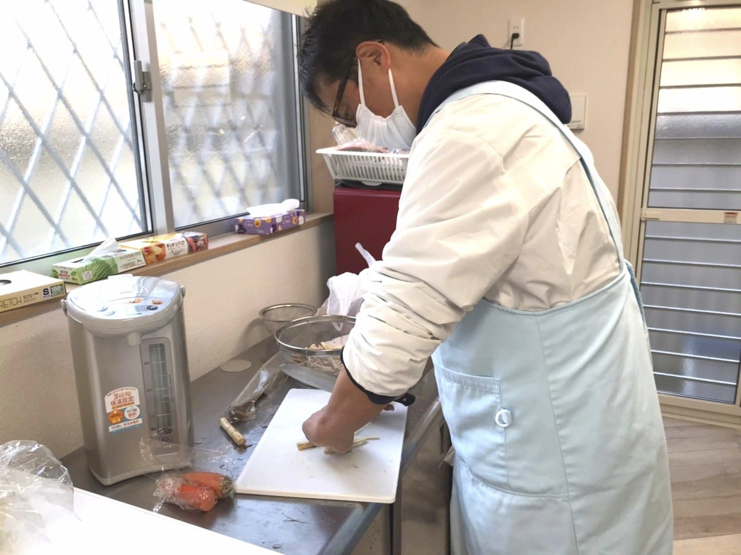 みんなのカフェ・ロベで男性スタッフもキッチンに立ち、お料理しております。