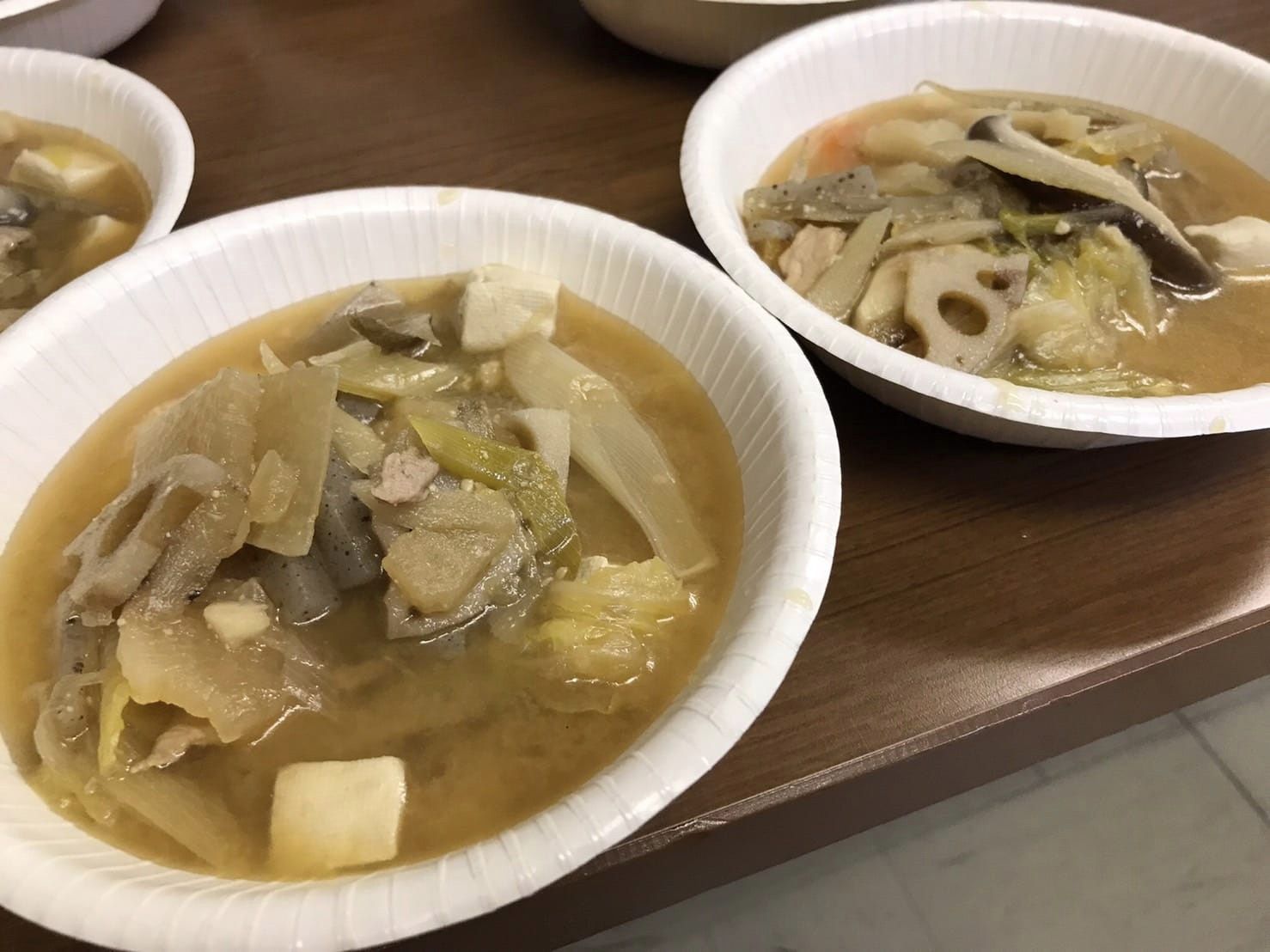 マナーズ様よりご支援いただきました具だくさんの豚汁やおにぎりで、子どもたちは来年への英気を養えたと思います