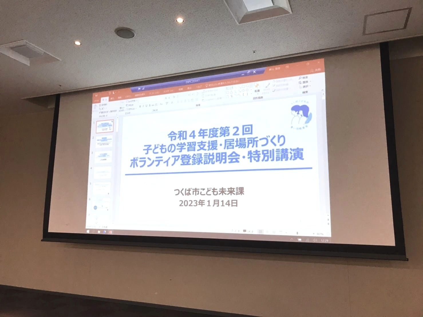 1/14「貧困と生きづらさをかかえる子供たちのSOSの見つけ方」という特別講演を拝聴し、後半はボランティア説明会で、子供たちの支援をしている14の団体が、各々のボランティア活動の紹介と募集を呼びかけました。