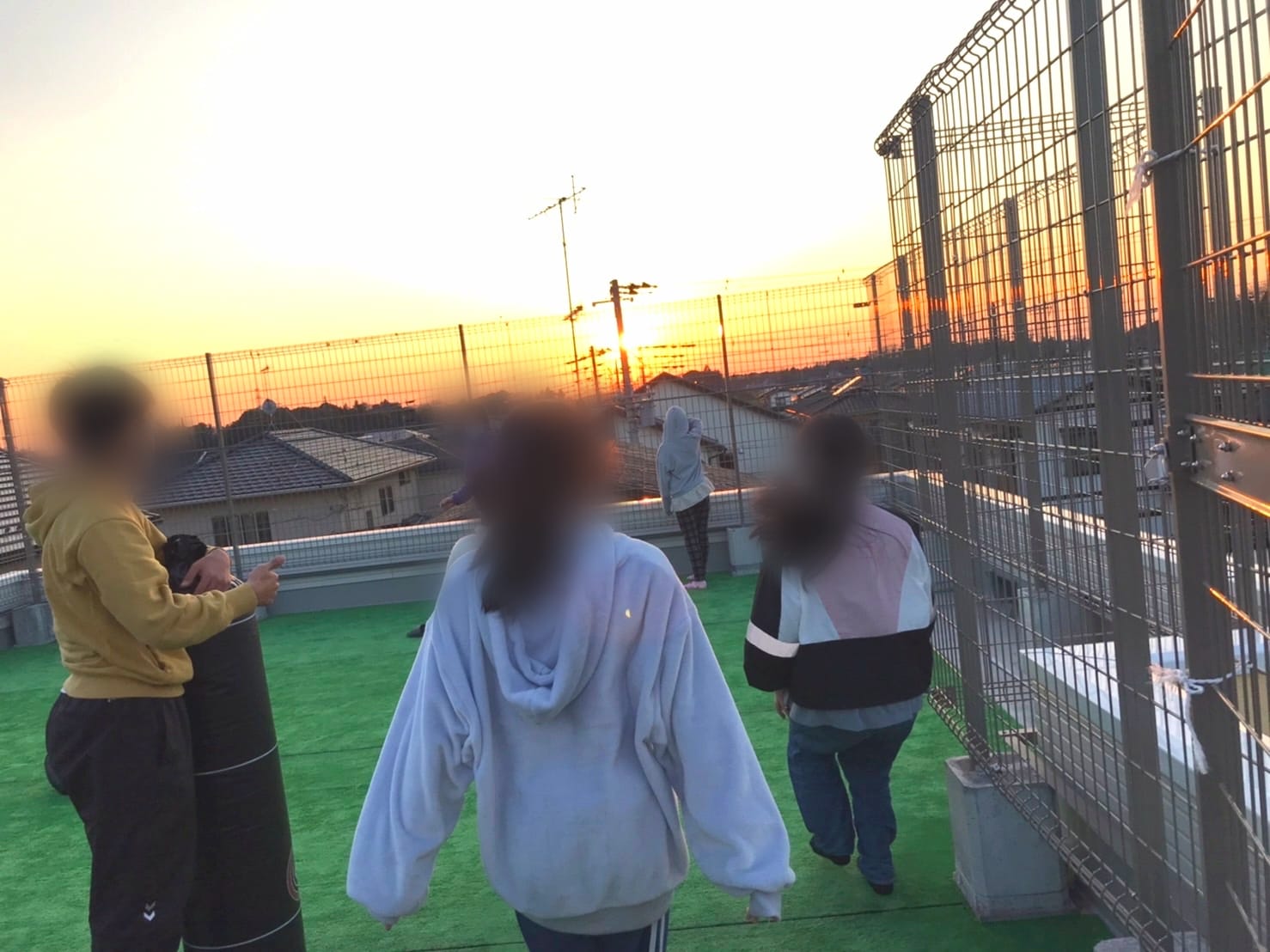子どもたちは、寒さもお構い無く、螺旋階段をのぼり、屋上で元気に遊び回っています