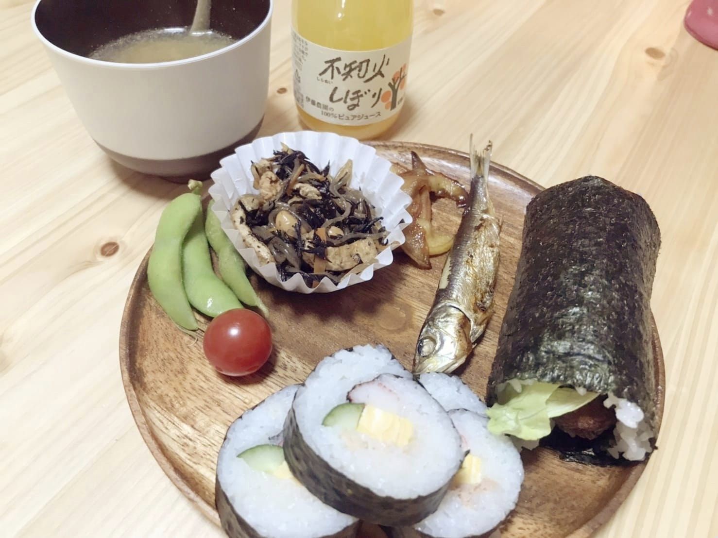 みんなで南南東を向いて黙々と恵方巻きを食べました。