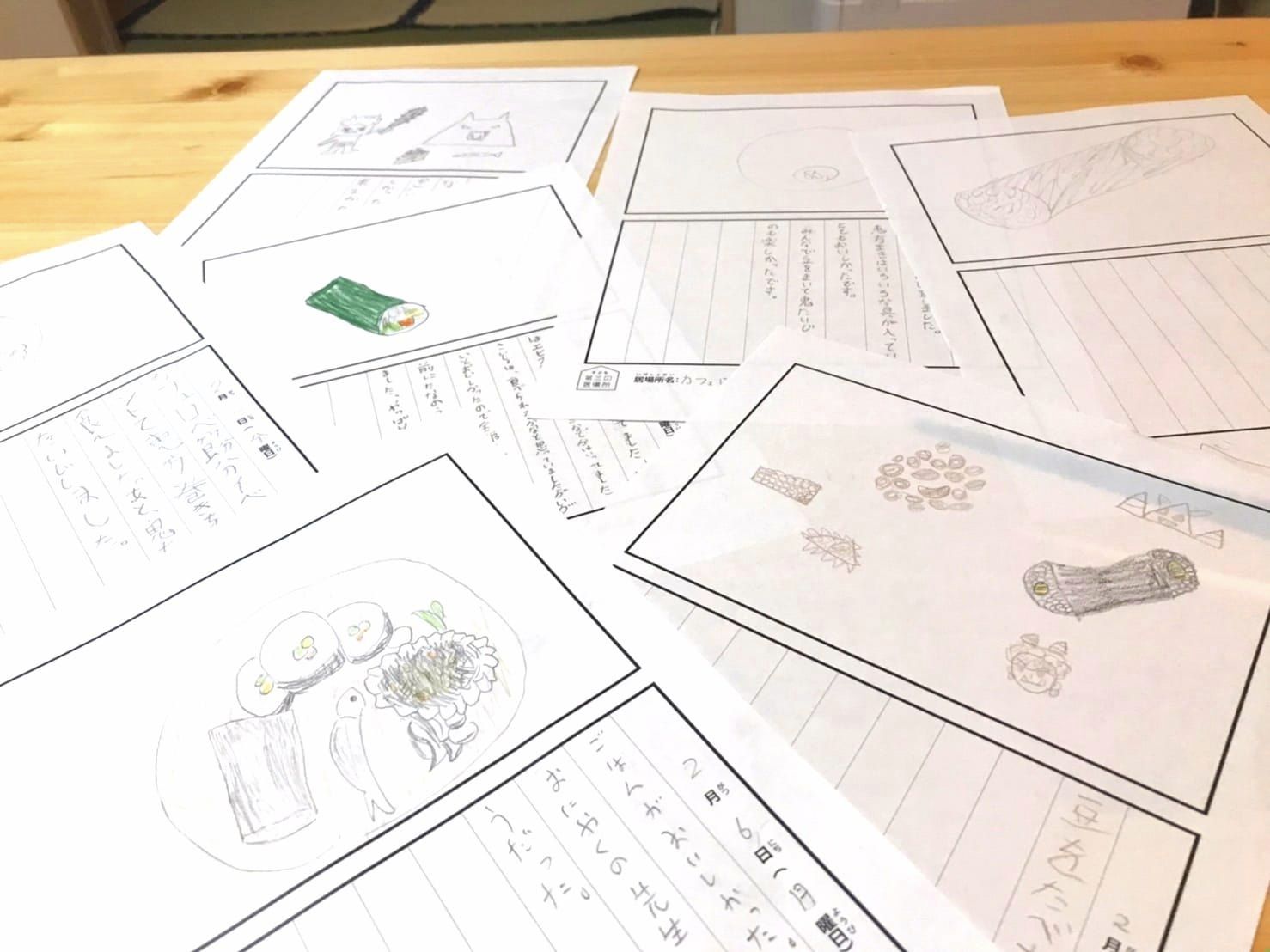 2/3、カフェ・ロベで行った節分イベントを、子どもたちに絵日記に書いてもらいました。