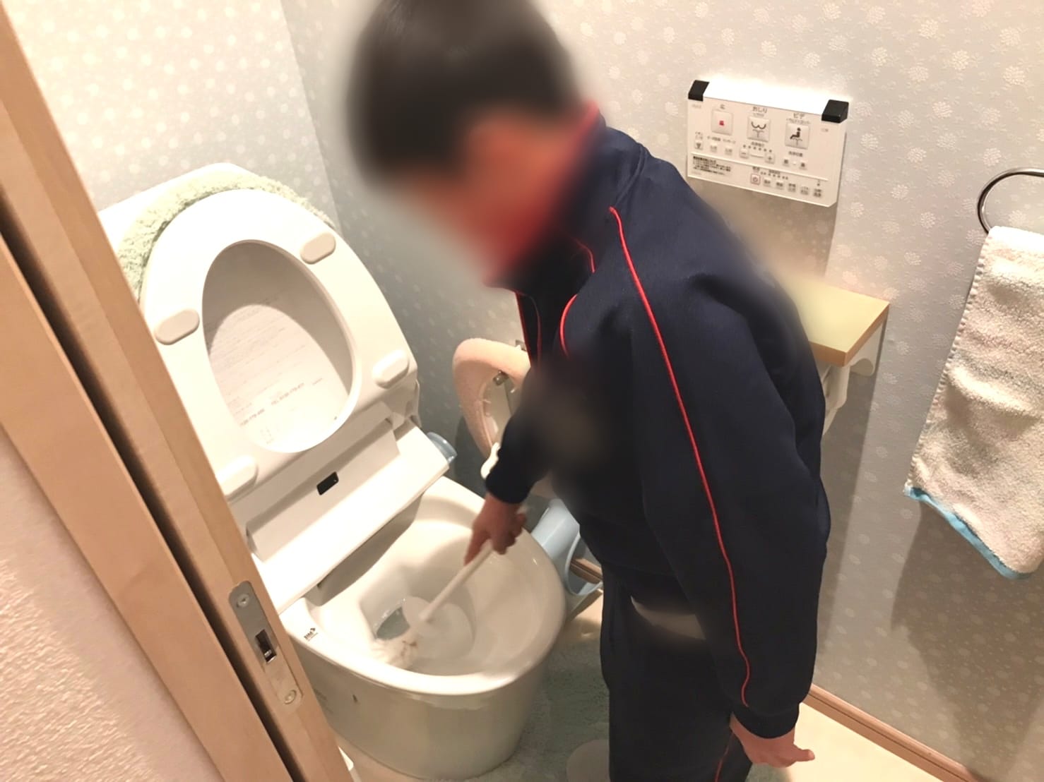 トイレ掃除を家でやったことがないという子にも教えてやってもらっています。