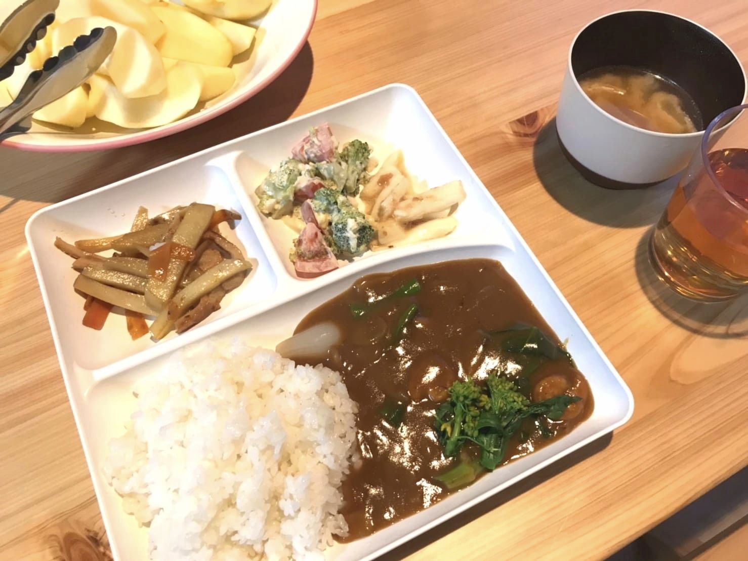 味噌汁は熱くて危ないので高学年がよそう。