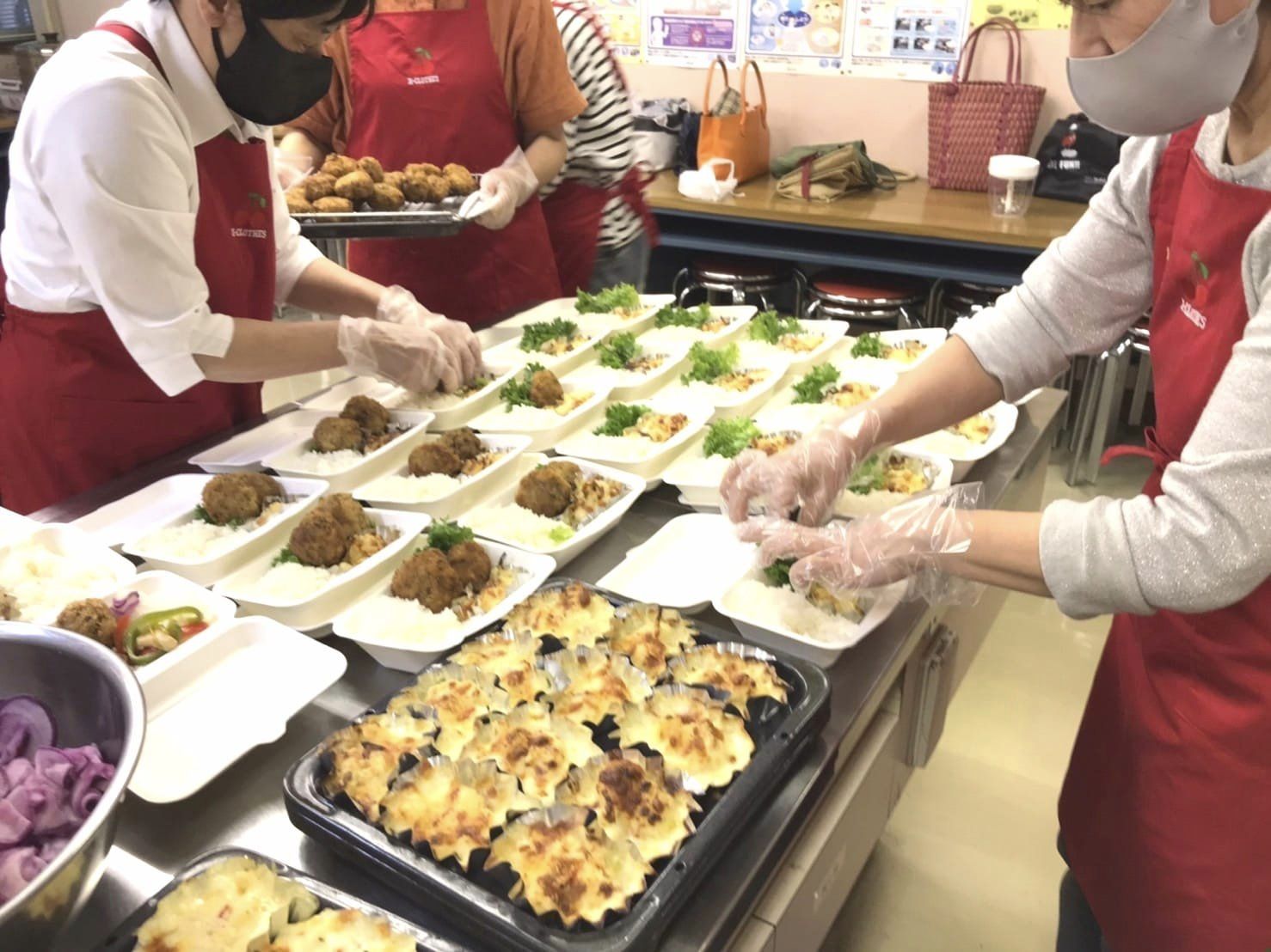 グラタンや鶏肉の炒め物など、野菜をたっぷり使った豪華なお弁当でした
