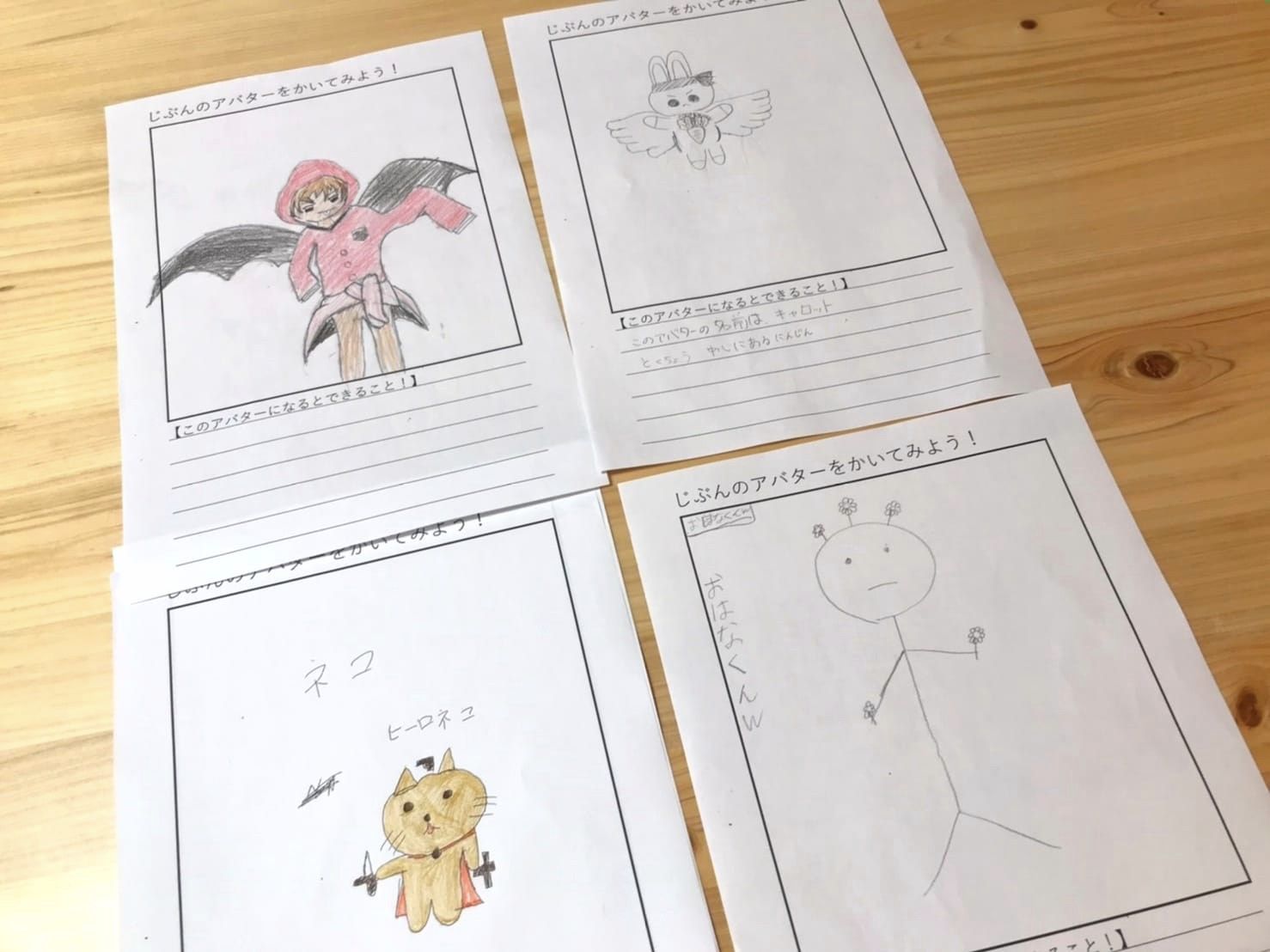 思い思いにアバターを描き、自分とにているところ、違うところを考えたり、名前をつけたりしました。夢中に描いていて楽しそうでした。