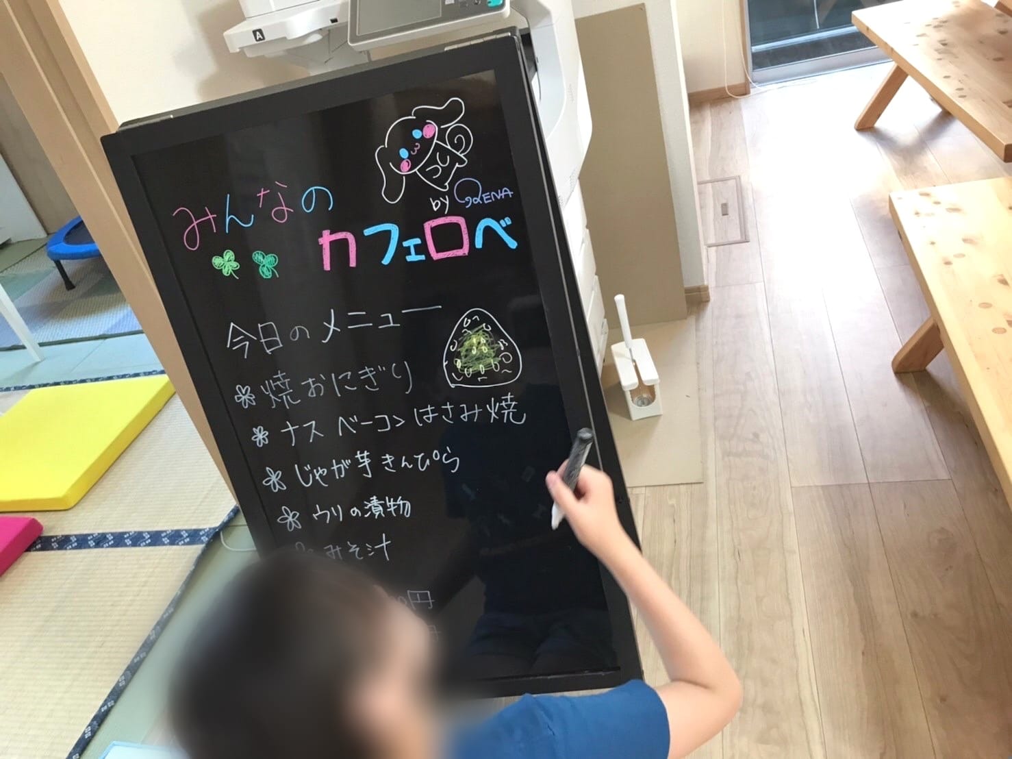 立て看板に夕飯メニューを書いて、外に立てておくことにしました。