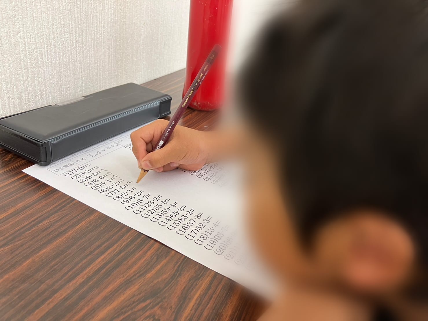 学習会では、小学生は無学年教材を使い学習を進めています。今学校で習っているところを学習するのではなく、それぞれの学力にあわせ、できていないところまでさかのぼって学習し、基礎学力をつけてもらいます。