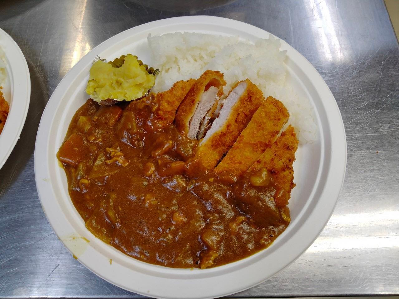 夕飯はひまわり食堂様よりカツカレーとみかんをご提供いただきました。受験シーズンなのでカツで縁起を担いでメニューを選んでくださいました。