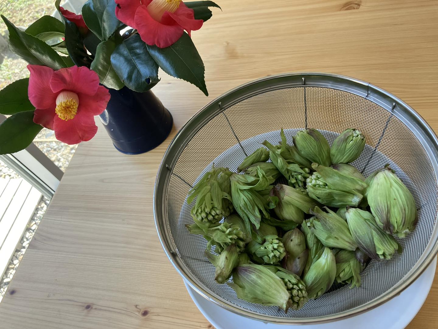 旬の山菜、ふきのとうをスタッフが自宅の庭から摘んできてくれたので、夕飯に天ぷらにしました。