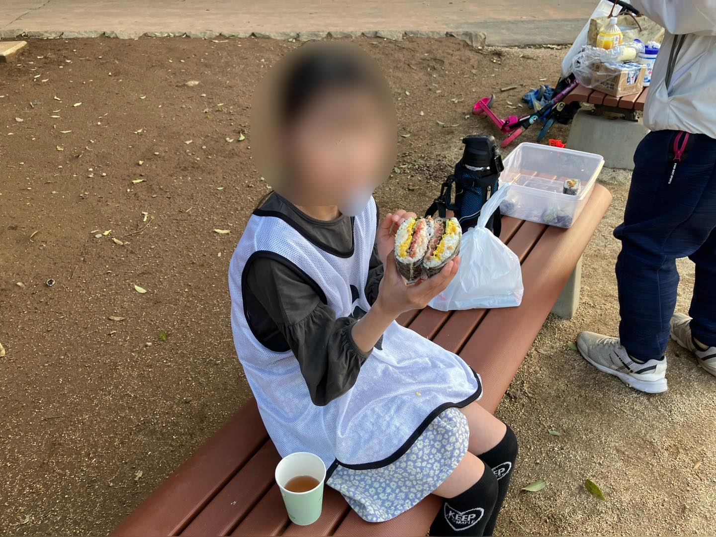 遊んだあとはみんなでおにぎらずを頬張りました。運動のあとのご飯は一段と美味しいものです