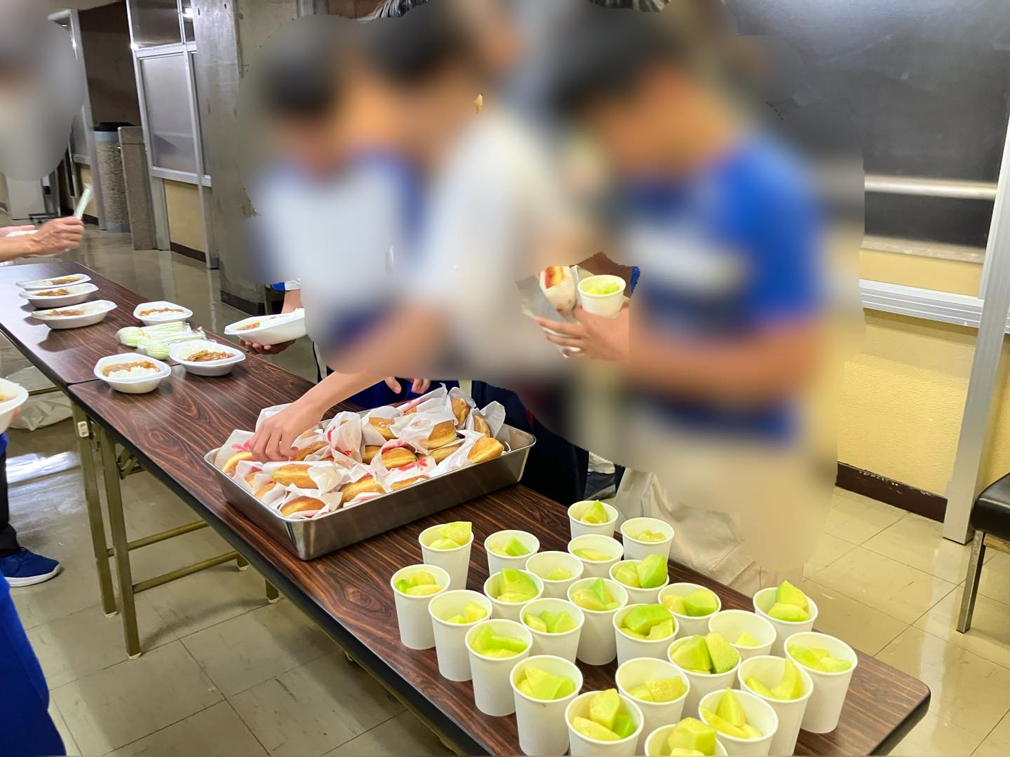 夕飯はひまわり食堂様の作ってくださったカレーでした。デザートのメロンは農家さんよりご寄付いただきました