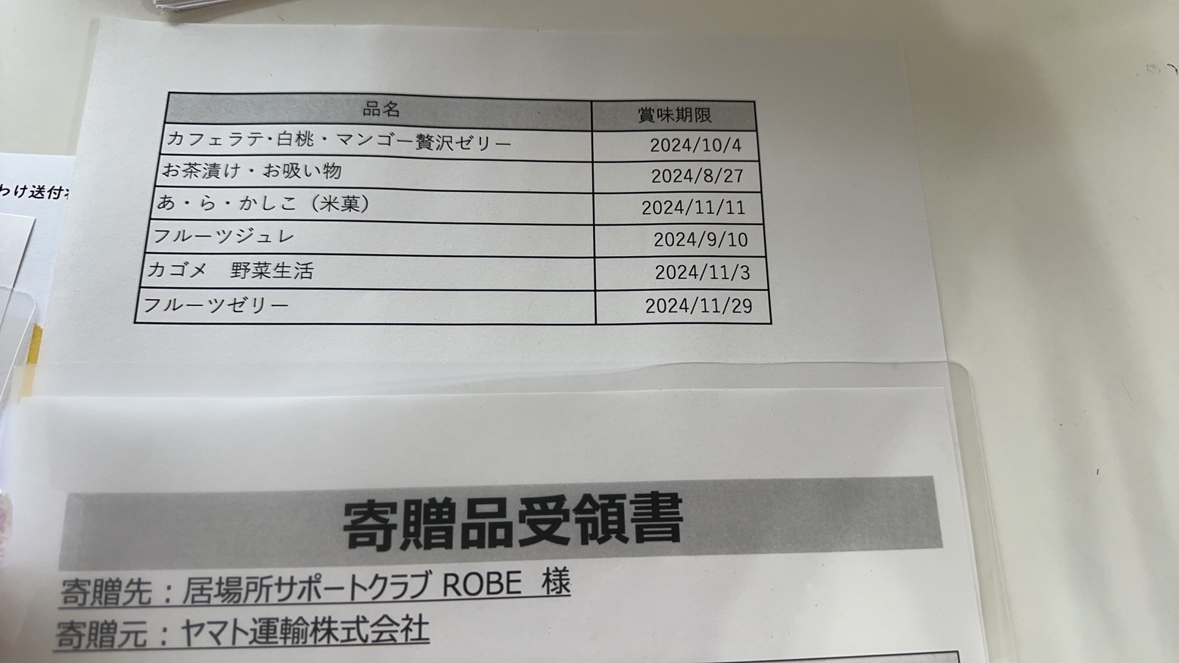 ヤマト運輸株式会社様よりご寄付をいただきました。