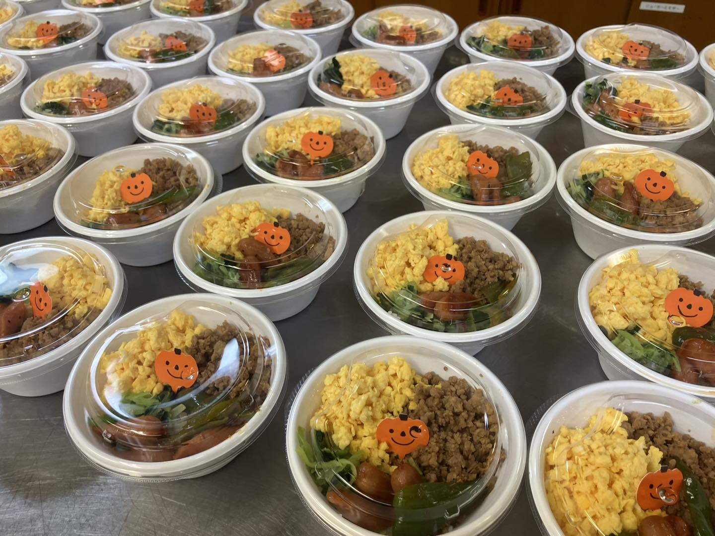 ハロウィン月間ということで、夕飯のお弁当の真ん中にはハロウィンかぼちゃ君がおります。
