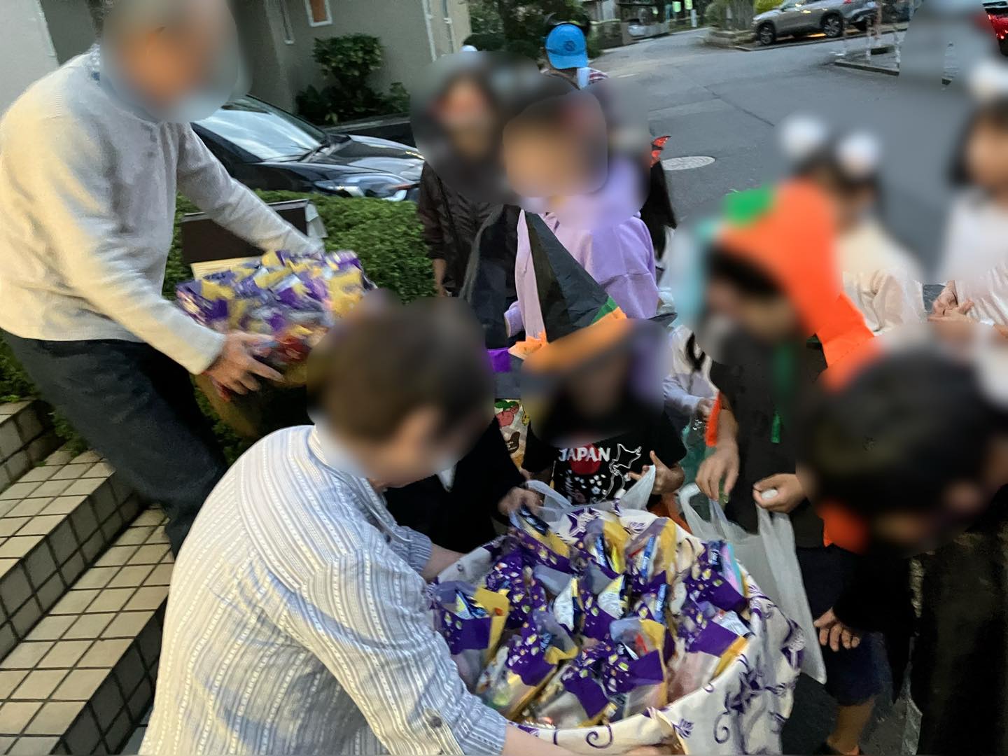 今回もご近所の方々がご協力くださり、お菓子を子どもたちに配ってくださいました