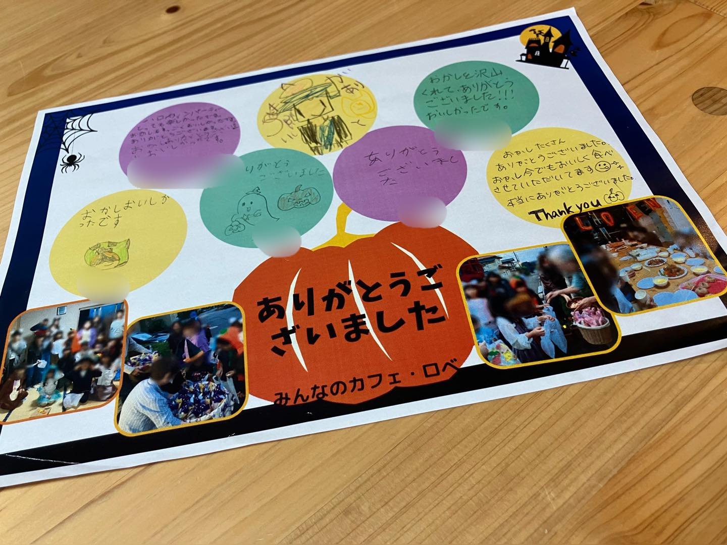 ハロウィンでお菓子を配っていただいたお礼に、子どもたちは感謝のメッセージをかきました。
