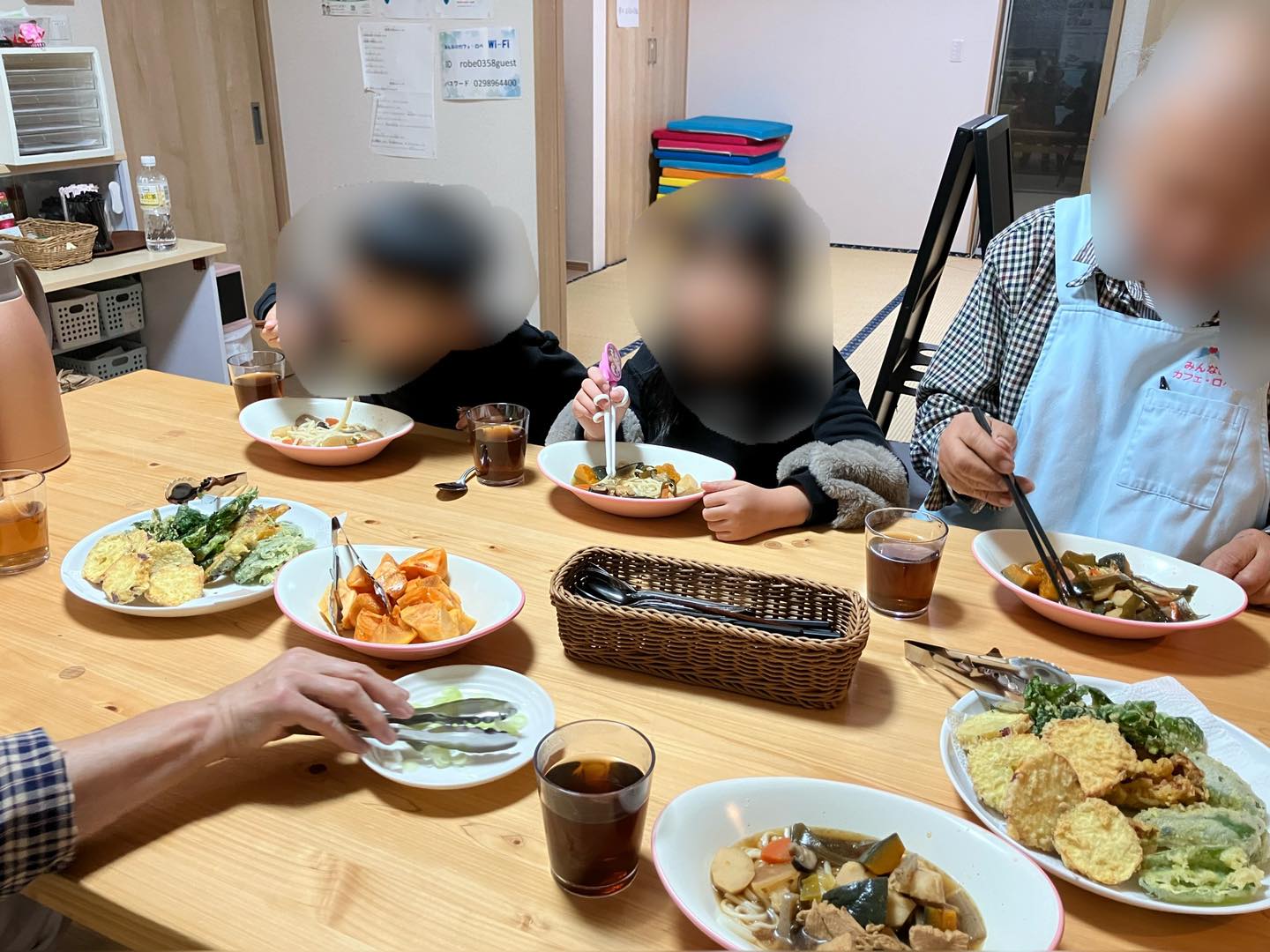 スタッフのお庭にある明日葉を天ぷらにしました。パリパリと音をたててみんな美味しそうに食べていました。