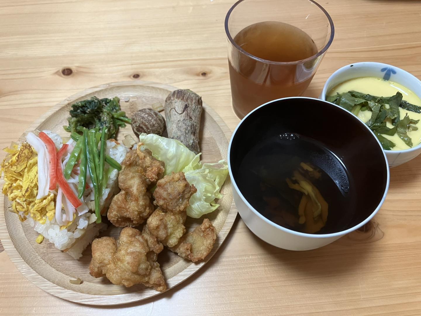 子供の日メニューは子どもたちの好きな唐揚げの他、ちらし寿司や茶碗蒸しを出しました。
