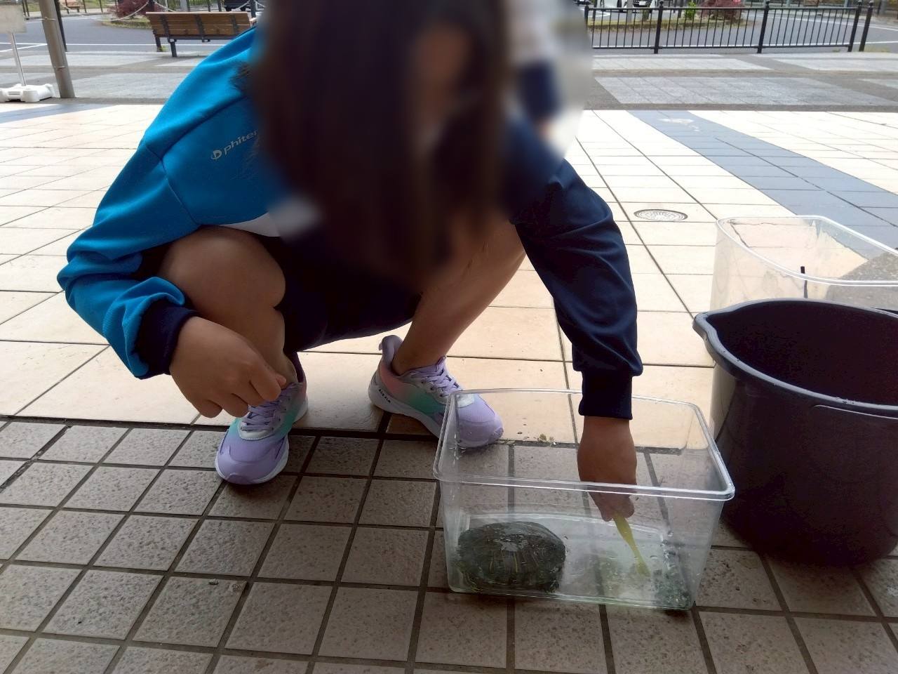 亀の水槽も、皆で協力してキレイにピカピカに掃除できました✨