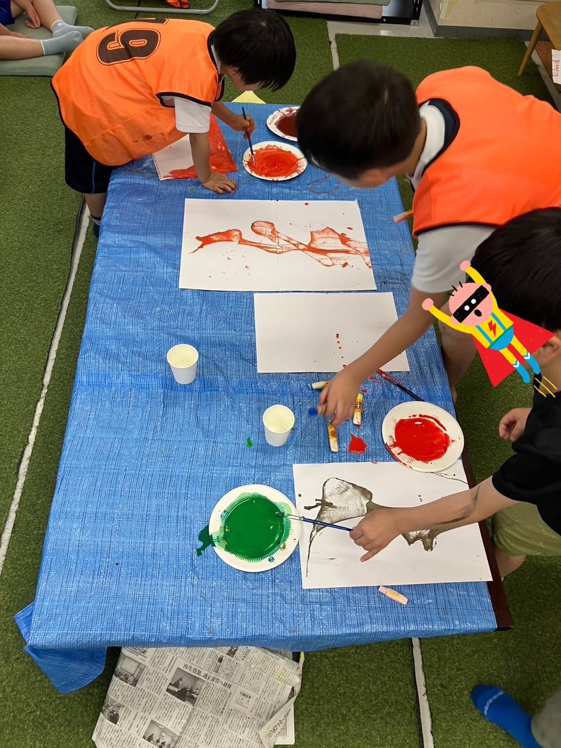 好きな色を絵の具で作り、世界で一つだけの作品がたくさん完成しました