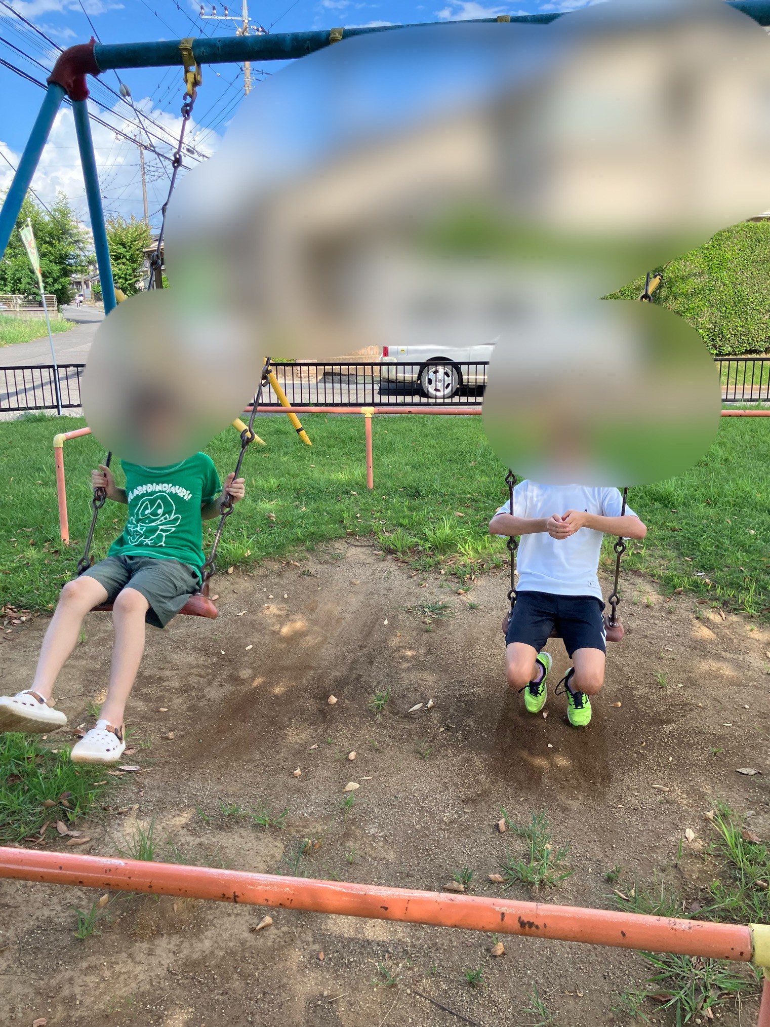 ブランコに乗ったり、バドミントンをしたり、蝉を見つけたり。