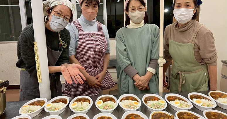 食事支援は竹園土曜ひろば様によるカレーライス、おにぎり。