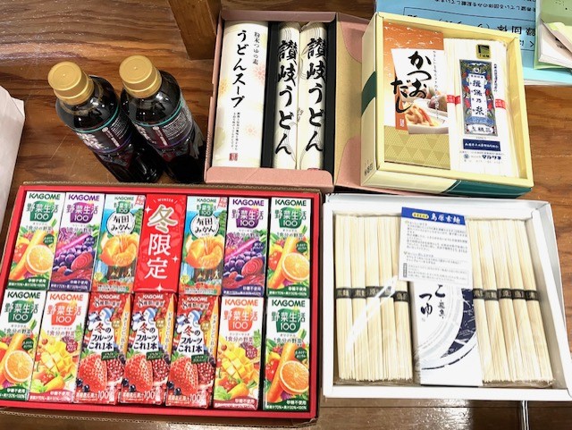 2026年1月19日 会沢和敏様より、カゴメジュース詰合せ13本セット、讃岐うどん、揖保乃糸、麺つゆのご寄付をいただきました。温かいご支援ありがとうございます。